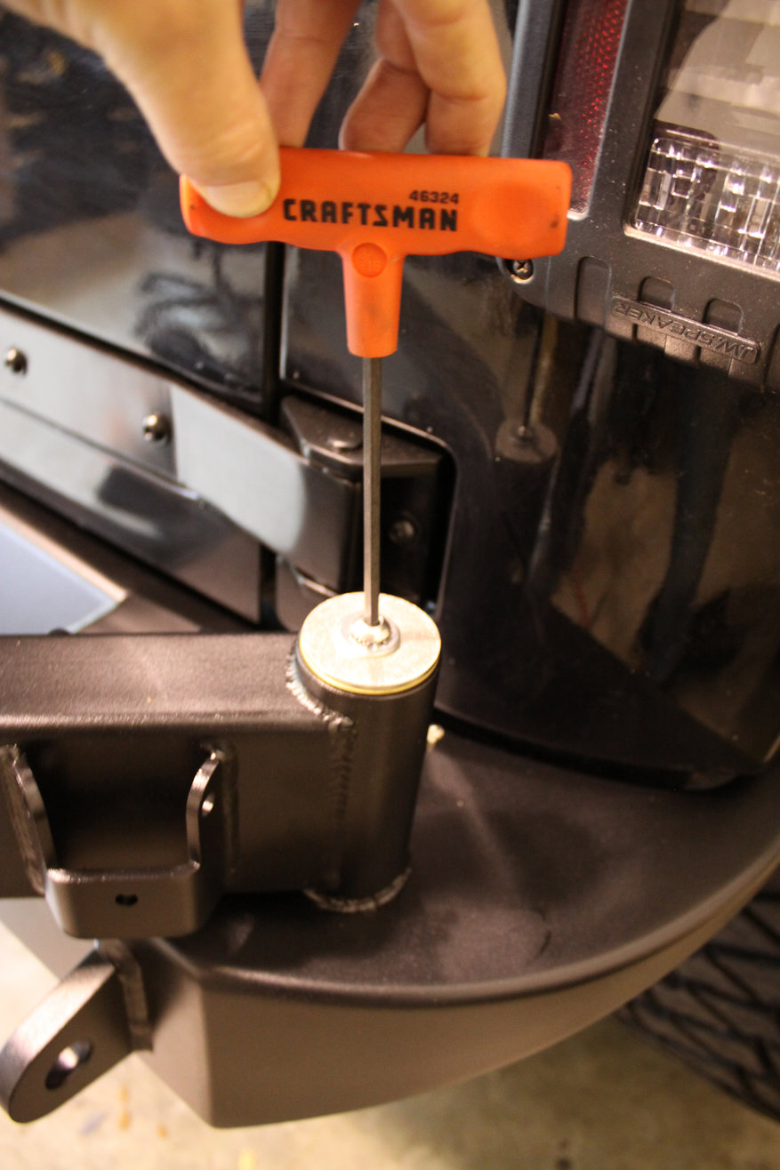 With either Ridgeline bumper, a full removal to install cube lights down the road is not necessary. Removing the mounting bolts and sliding the bumper back on the frame will give you more than enough room to accomplish this task. With the tire carrier installed, the tie rod joint linking the carrier to the tailgate will also need to be disconnected, and removal of your spare will make the whole assembly weigh a lot less.