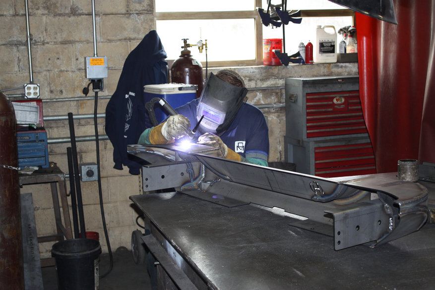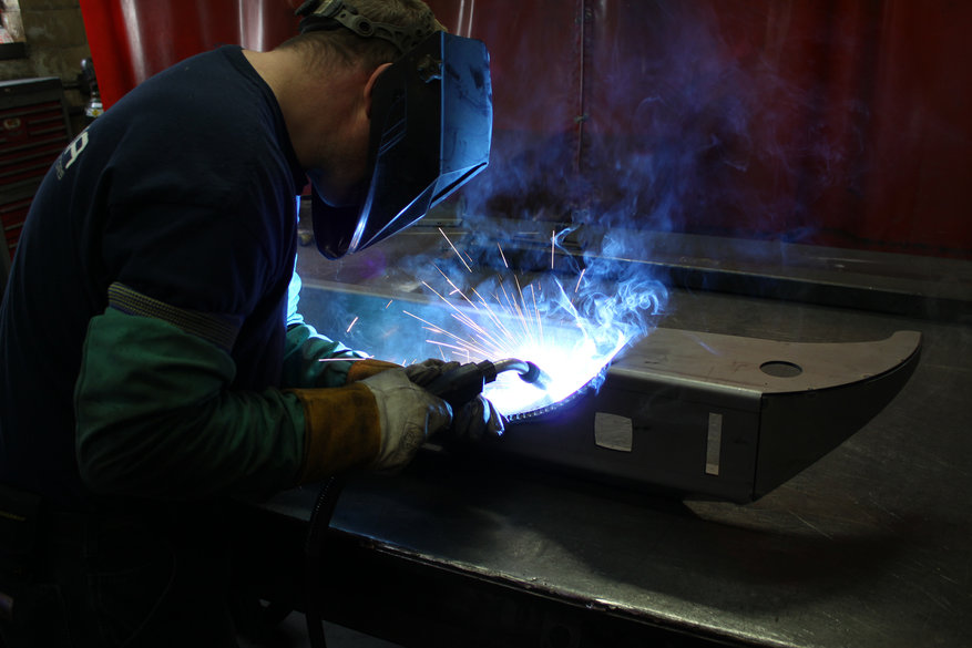 The bumper components are then MIG welded together by hand, and are thoroughly inspected for structural integrity before moving on to the next step.