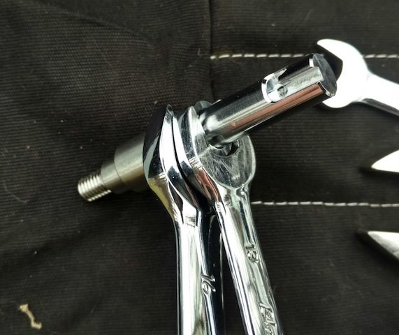 Use the 16mm wrench again to tighten the adaptor to the factory base until it fits snugly.