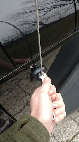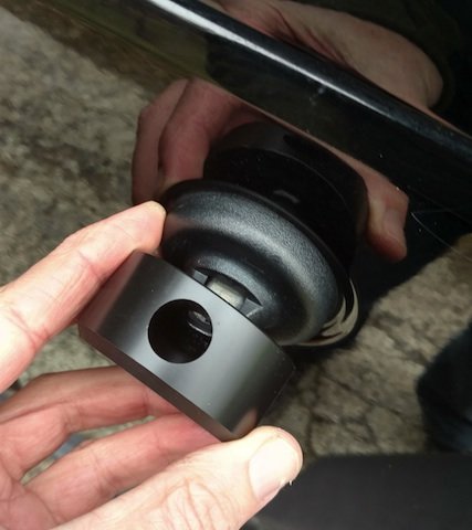 Put the PVC bezel over the factory antenna base, and thread the antenna adaptor and quick release into the factory base by hand.