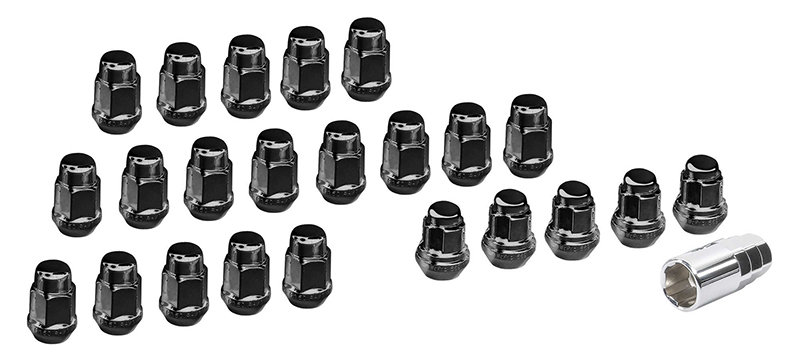 Changing out the factory wheel lug nuts can add some personality to your new vehicle - especially if you are swapping into aftermarket rims and new tires. These sport a chrome or black finish and include five anti-theft wheel locks to provide peace of mind when installing those new wheels.