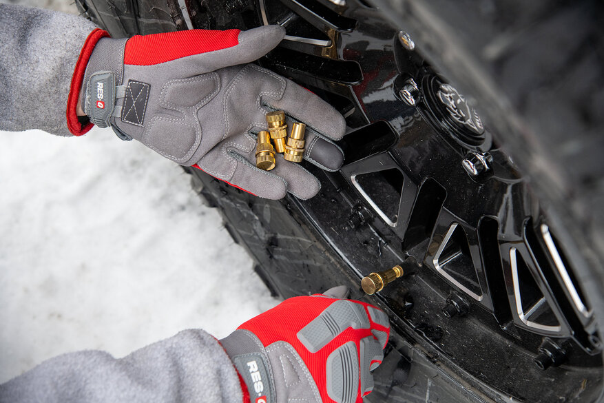A good way to speed up that process is with automatic tire deflators from Res-Q, JT Brooks, Rugged Ridge, or Rampage. These products come in a handy four-pack so you can screw one on each wheel and deflate everything at the same time. Plus, you can calibrate some of these deflators to stop at a certain pressure level, so you don’t have to worry about airing down too far. Once you reach your desired pressure, air will stop releasing and you simply unscrew the deflator for storage.