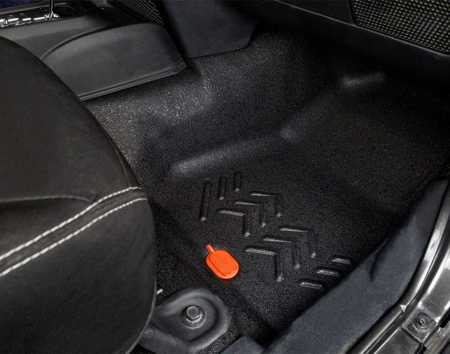 Armorlite products are currently available for the ’07 to ’18 JK Wrangler (two- and four-door), ’18 to current JL Wranglers and JT Gladiators. The floor comes in two color options: Mesa Smoke (black) and Desert Khaki (tan), and can be customized even further with drain plugs in several great colors. I love how the red drain plugs stand out against that Mesa Smoke flooring and it perfectly accents my Firecracker Red Jeep.