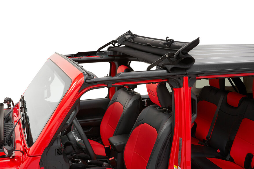 Essentially, it acts just like the front section of any modern Jeep factory soft top.