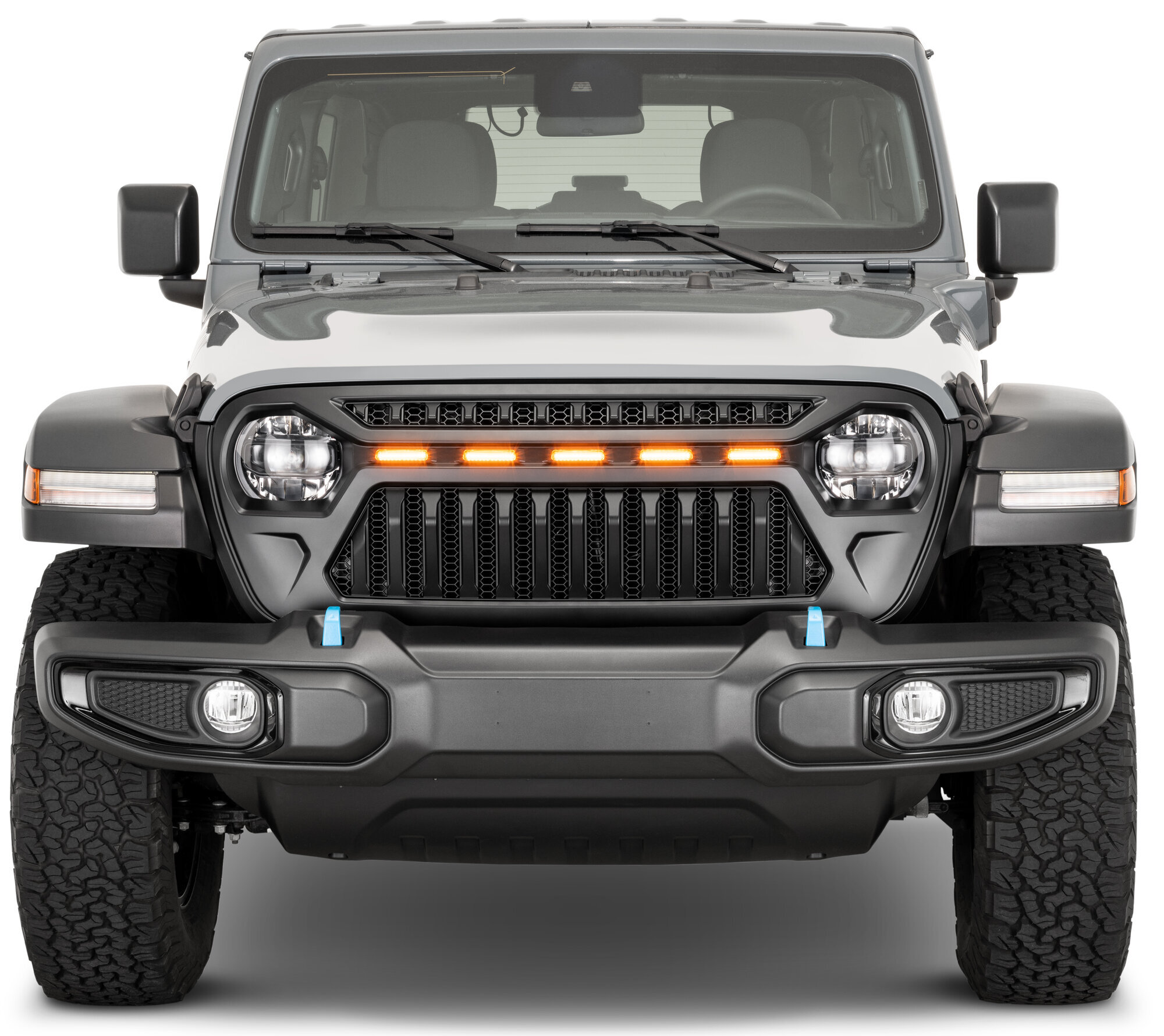 We recently installed the Goblin Shark grille on one of our Wrangler JL Willys, and included the LED amber light market option, giving this thing a distinguishing look that is almost unmatched in the aftermarket realm.