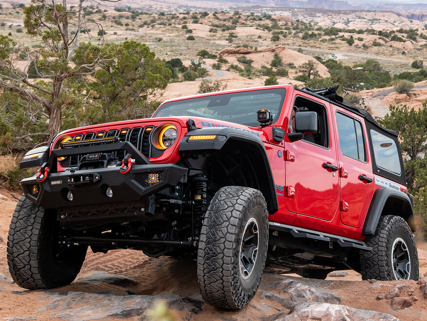We took our Wrangler 4xe all across Moab, Utah for EJS this year, riding through Hell’s Revenge, Fins and Things, Metal Masher, Top of the World, as well as Wipeout Hill and Steelbender. And the Quadratec ST2 Suspension Lift by Teraflex exceeded all expectations. They say it has ‘Optimal performance in the most demanding conditions’, and it definitely delivered.