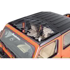 Putco's Element Sky View for the Jeep Wrangler & Gladiator allows for the simple removal of factory hardtop Freedom panels and adds a new, clear, protective sky view. The Element Sky View is manufactured to fit OE specifications and does not require any drilling or other modifications. Panel precision is manufactured with dark gray tinted polycarbonate for enhanced durability and UV protection to guard against fading. Features pre-attached foam and clamps to protect exterior paint from scratching while ensuring a compressed, tight fit. The panel is additionally insulated to reduce road and wind noise which helps keep the vehicle's cabin temperature appropriate for each season. Includes special storage bag for easy storage when removed. Three-year limited warranty. Manufactured in the USA.