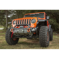 Full-width aftermarket bumpers offer a variety of popular looks such as hoops, stingers and overrider bars that allow you to customize your Jeep's front end and many are no drill applications. These bumpers can also come in a variety of finishes like textured or gloss black, stainless steel, chrome, polished and paintable raw steel. Because these bumpers are significantly stronger than the factory stock bumper, most have an integrated winch mount and can reuse or relocate the factory fog light - or provide extra mounting options for other auxiliary lighting.