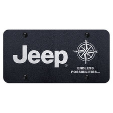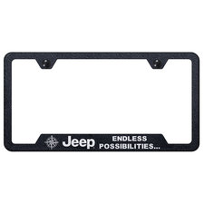 Automotive Gold Laser Etched Stainless Jeep Endless Possibilities Cut-Out License Plate Frame in Rugged Black Temporarily Out Of Stock $37.95