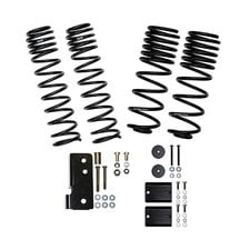 Spring lift kits, or suspension lifts, come in a variety of lift sizes and offer new leaf or coil springs that help raise your vehicle, while also providing the strength and flex to take on any type of off road obstacle. These aren't just spacers you add to your existing springs - they are full blown replacements and also help bear the weight of larger tires, wheels, winches and aftermarket bumpers without sagging. Some kits are budget oriented, meaning you will need to add other components depending on your off road needs, while others are more inclusive and will contain parts like sway bar links, track bar brackets, control arms to help assist ride quality with the lift's larger size.