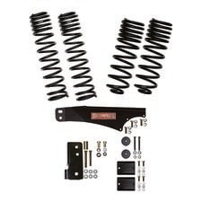 Spring lift kits, or suspension lifts, come in a variety of lift sizes and offer new leaf or coil springs that help raise your vehicle, while also providing the strength and flex to take on any type of off road obstacle. These aren't just spacers you add to your existing springs - they are full blown replacements and also help bear the weight of larger tires, wheels, winches and aftermarket bumpers without sagging. Some kits are budget oriented, meaning you will need to add other components depending on your off road needs, while others are more inclusive and will contain parts like sway bar links, track bar brackets, control arms to help assist ride quality with the lift's larger size.