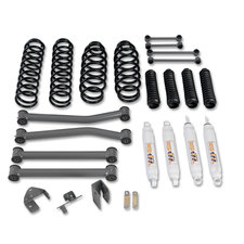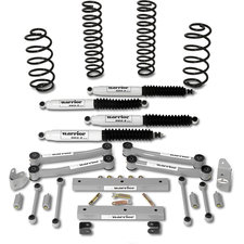 Spring lift kits, or suspension lifts, come in a variety of lift sizes and offer new leaf or coil springs that help raise your vehicle, while also providing the strength and flex to take on any type of off road obstacle. These aren't just spacers you add to your existing springs - they are full blown replacements and also help bear the weight of larger tires, wheels, winches and aftermarket bumpers without sagging. Some kits are budget oriented, meaning you will need to add other components depending on your off road needs, while others are more inclusive and will contain parts like sway bar links, track bar brackets, control arms to help assist ride quality with the lift's larger size.