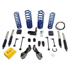 Spring lift kits, or suspension lifts, come in a variety of lift sizes and offer new leaf or coil springs that help raise your vehicle, while also providing the strength and flex to take on any type of off road obstacle. These aren't just spacers you add to your existing springs - they are full blown replacements and also help bear the weight of larger tires, wheels, winches and aftermarket bumpers without sagging. Some kits are budget oriented, meaning you will need to add other components depending on your off road needs, while others are more inclusive and will contain parts like sway bar links, track bar brackets, control arms to help assist ride quality with the lift's larger size.