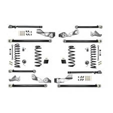 Spring lift kits, or suspension lifts, come in a variety of lift sizes and offer new leaf or coil springs that help raise your vehicle, while also providing the strength and flex to take on any type of off road obstacle. These aren't just spacers you add to your existing springs - they are full blown replacements and also help bear the weight of larger tires, wheels, winches and aftermarket bumpers without sagging. Some kits are budget oriented, meaning you will need to add other components depending on your off road needs, while others are more inclusive and will contain parts like sway bar links, track bar brackets, control arms to help assist ride quality with the lift's larger size.