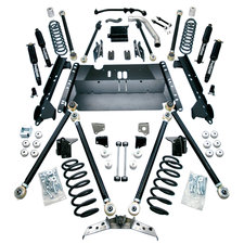Spring lift kits, or suspension lifts, come in a variety of lift sizes and offer new leaf or coil springs that help raise your vehicle, while also providing the strength and flex to take on any type of off road obstacle. These aren't just spacers you add to your existing springs - they are full blown replacements and also help bear the weight of larger tires, wheels, winches and aftermarket bumpers without sagging. Some kits are budget oriented, meaning you will need to add other components depending on your off road needs, while others are more inclusive and will contain parts like sway bar links, track bar brackets, control arms to help assist ride quality with the lift's larger size.