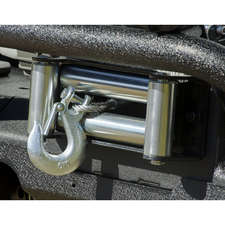 A fairlead is necessary to guide and protect your winch line as it is being pulled in to the winch. There are two basic types of fairleads, roller and hawse style. Roller fairleads are used with steel cable winches. They use two horizontal mounted rollers and two vertical mounted rollers to guide the steel cable from any angle. Hawse fairleads are used with synthetic line winches. They are usually made from aluminum and feature rounded edges around the center opening. The synthetic line slides easily over these rounded edges as it is being spooled in to the winch.