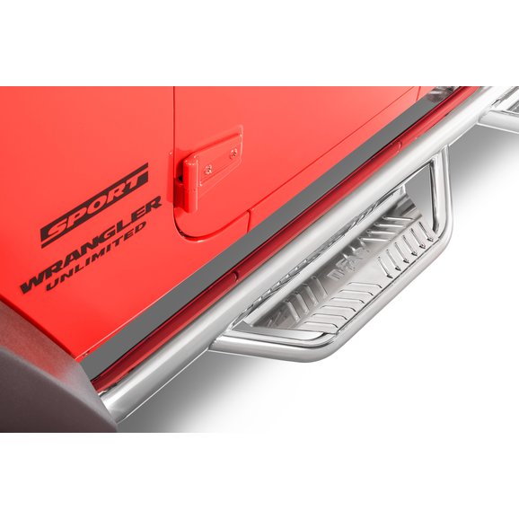 Step right up! N-Fab Nerf Steps help you do exactly that. Even if you didn't jack up your Wrangler 4-Door and slap a set of 35's on it, sometimes getting in and out can be a bit of a challenge. N-Fab's Podium Nerf Steps have clean shape and style to them with built-in ruggedness. These 1-piece fully-welded stainless steel steps feature a 3" thick diameter main tube and a sure grip step plate. That means they're strong, highly corrosion-resistant, easy to install, and provide plenty of surface area and support. They've been manufactured to provide a nice clean fit that mounts high and tight to your Wrangler's body for a nice subtle look for on-road and off-road vehicles alike. Available in polished stainless steel or textured black.