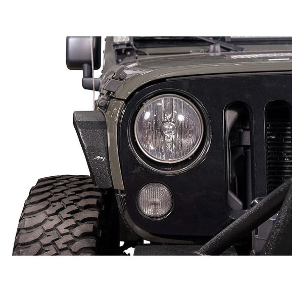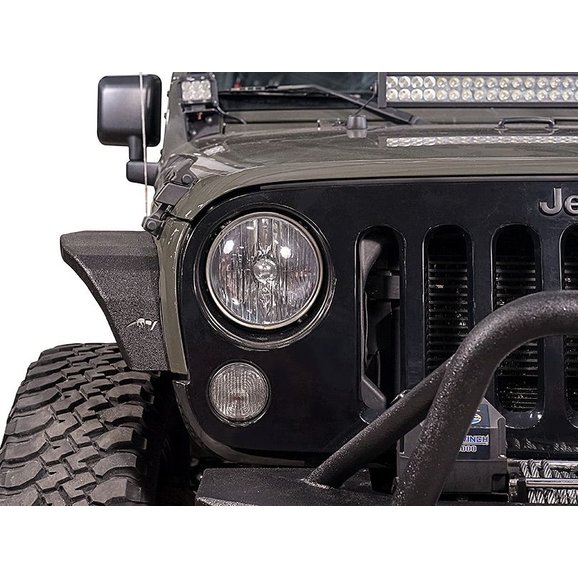 Reaper Off-Road Sickle Front Fender Flares for the Jeep JK 2-Door and Unlimited JK 4-Door models feature a narrow profile (4”) design or a ( 6.5") Mid Width design for maximum clearance and aggressive styling. These fender flares are built from corrosive resistant 5052 aluminum and welded in house at Reaper Off-Road by American fabricators. The included backing plates can be painted for a customized look to further enhance the appearance of your Jeep. These fender flares come in a high quality black textured coating that is durable and weather resilient.