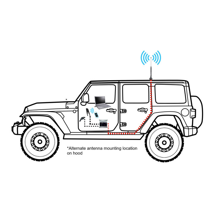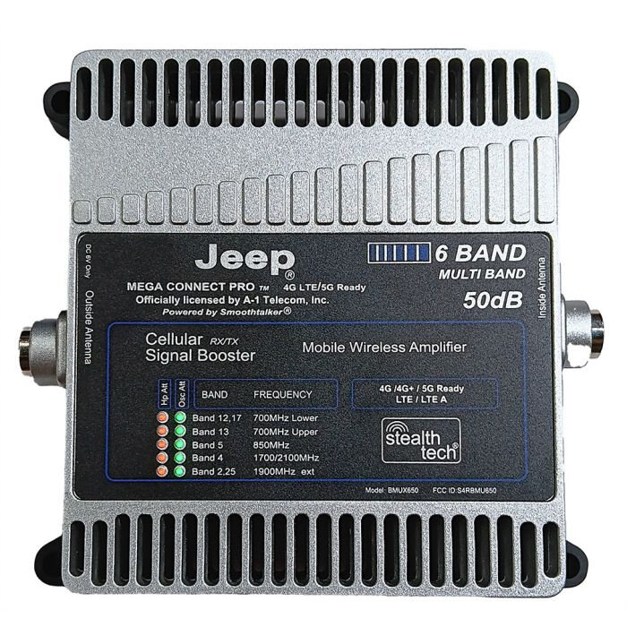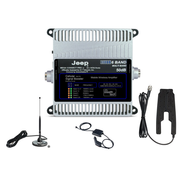 The A-1 Telecom Mega-Connect-Pro Jeep Cellphone Booster Kit (50dB Multi-User/Multi-Device) is specifically designed to keep you connected across all your devices, even in areas with poor cell signal. With a 50 dB gain and compatibility with 4G and 5G bands, this kit ensures strong voice and data communication while you’re driving, whether you’re commuting in the city or exploring off-grid trails.