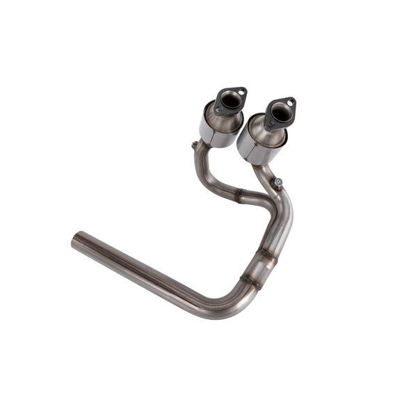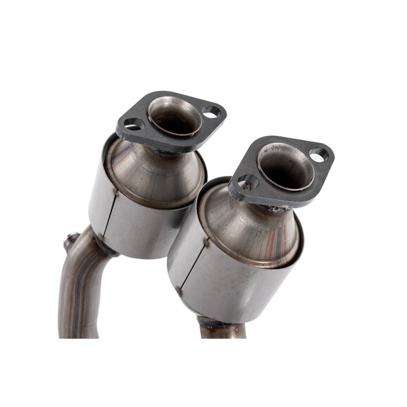 AccuPart's Front Exhaust Pipe With Catalytic Converters is exclusively designed for 2004-06 Jeep Wrangler TJ models with a 4.0L engine, and will help the vehicle reduce exhaust emissions, ensuring optimal performance and compliance with environmental regulations. Each converter contains a catalyst composed of precious metals such as platinum, palladium, and rhodium, which facilitate a chemical reaction to convert harmful pollutants like carbon monoxide, hydrocarbons, and nitrogen oxides into less harmful substances, including carbon dioxide, water vapor, and nitrogen. Constructed from high-quality stainless steel, the AccuPart Front Exhaust Pipe with Catalytic Converters offers exceptional durability and resistance to rust and corrosion. Additionally, its precise fitment does not require modification. Kit includes front pipe and catalytic converter.