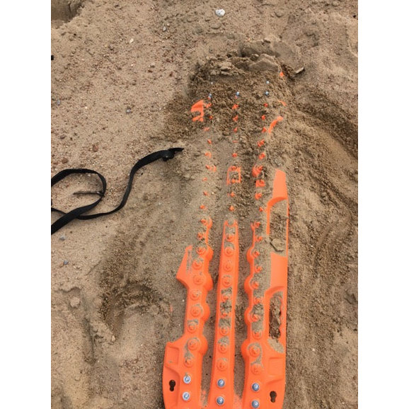 The ActionTrax Quick Grab Recovery Leashes are 3.5' foot long straps that make the recovery of your ActionTrax Recovery Boards from deep sand, snow, or mud easy. With these straps you will not have to get down on your knees to search for your boards that have been submerged in the mud or snow. Simply grab the end of the strap and pull them out. Remember to install the strap first before you use your ActionTrax Recovery Boards. The Quick Grab Straps are sold in pairs.