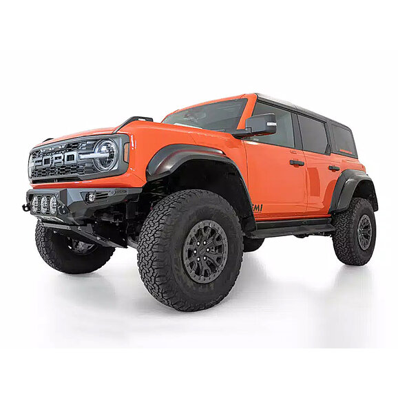 Seamless Integration with OEM Features: Designed to retain the Bronco Raptor's factory parking sensors and tow hooks, the Bomber Front Bumper ensures that essential functionalities remain intact. An optional 3/16-inch vented aluminum skid plate is available for enhanced underbody protection, and an Adaptive Cruise Control Relocation Bracket can be added to maintain full feature functionality.