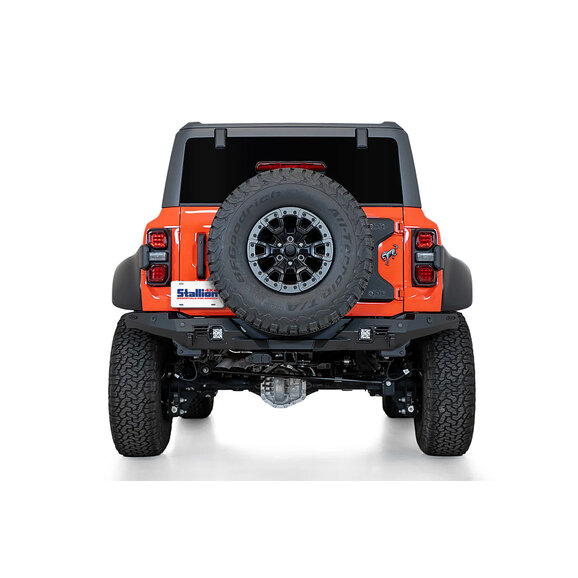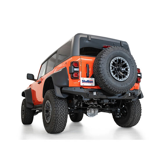 The ADD Offroad Bomber Rear Bumper's slim-fitting design offers a unique, low-profile look that adds style to your off-road build. Crafted from plate steel and featuring a hammer black powder coat finish, this bumper is strong and durable enough to take on the toughest trails. The lightweight aluminum alloy panels are finished in a stunning satin black powder coat for an eye-catching aesthetic. The Bomber also features two heavily reinforced clevis mounts for 3/4” D-rings, bringing functional recovery options straight to your Bronco Raptor. There are 2 universal mounting points for cube lights towards both ends of the bumper that can provide supplemental lighting at the rear of the truck.