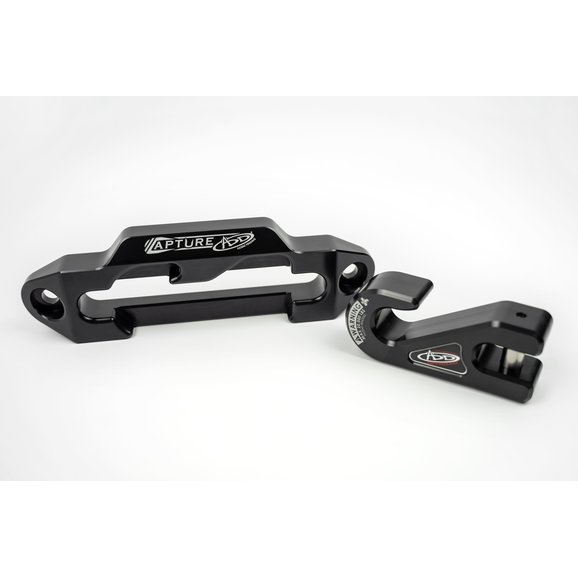 The ADD Offroad Capture Fairlead System provides a clean sleek look for the front end of your Jeep. This compact system firmly secures the provided winch hook into the a recessed hawse fairlead for a premium show quality finish. A universal design that is compatible with most front bumpers and winches with a rating for use up to 20,000 lbs. Made from a stout 1 5/16" thick CNC machined aerospace aluminum for durable performance. Available in a raw aluminum finish or a military grade hard anodized black finish for that stealth look.