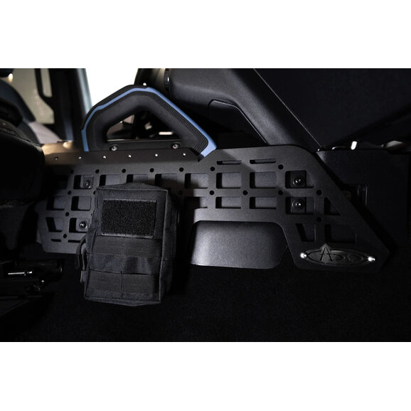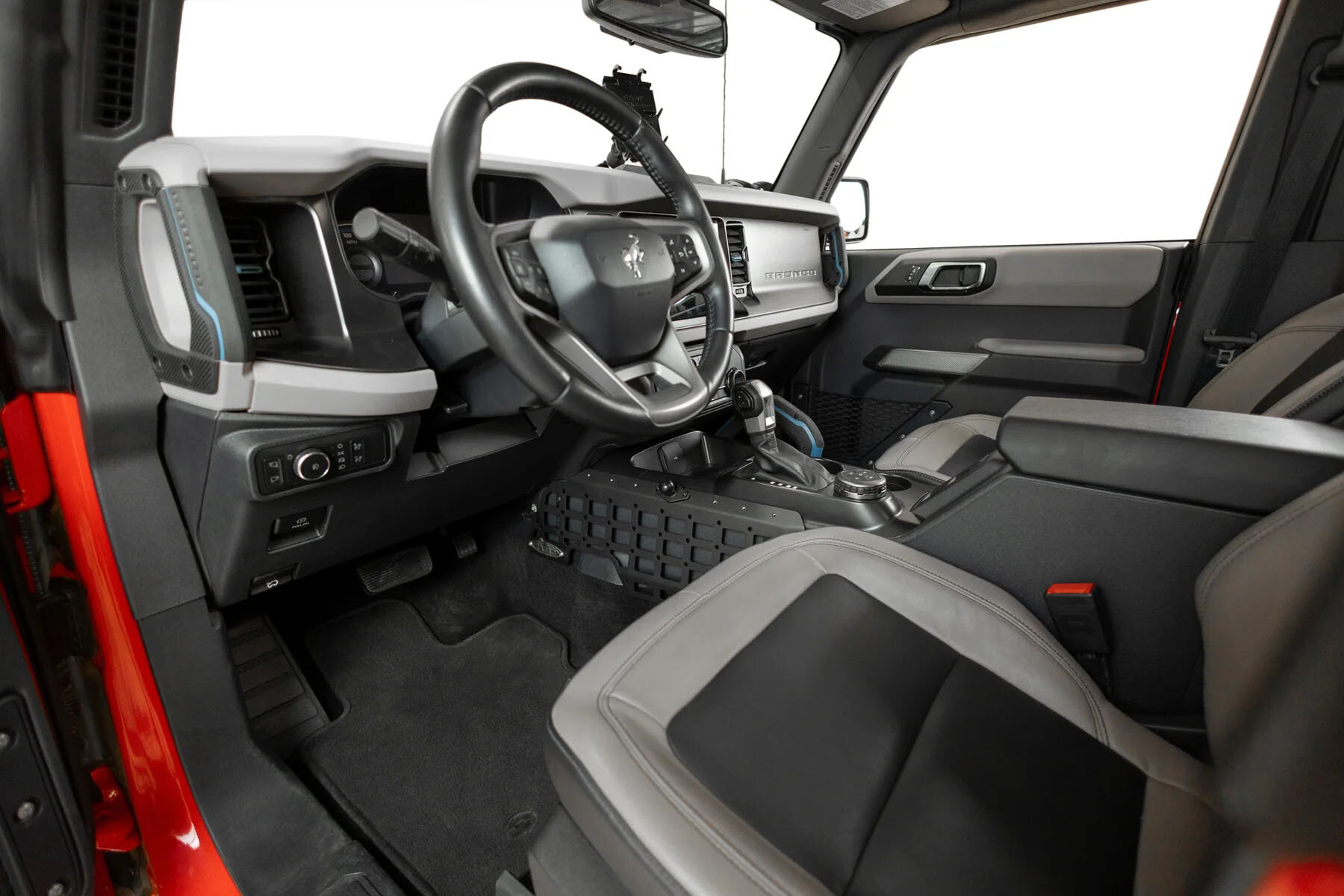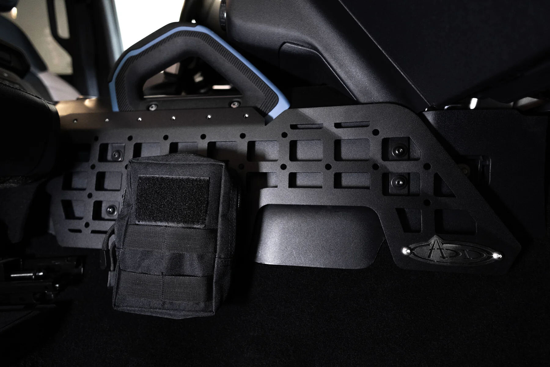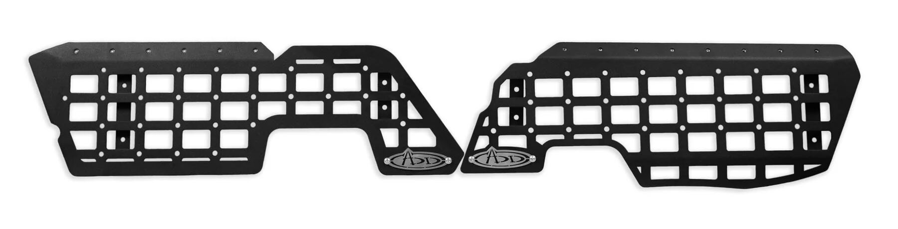 The ADD Offroad Center Console MOLLE Panels give your Bronco mission-ready interior organization with a clean, OEM-friendly fit. Constructed from 1/8" American steel and finished in a durable hammer-black powder coat, these driver and passenger panels mount directly to the 6th-gen console geometry while preserving full access to factory controls. Each panel features a MIL-STD MOLLE pattern for modular pouch and accessory attachment plus eight PEM nut mounting points for popular device bases making it simple to secure phones, radios, holsters, and EDC gear exactly where you need them. Minimal drilling is required and no full dash disassembly is necessary, so installation is straightforward for DIYers and professional installers alike.