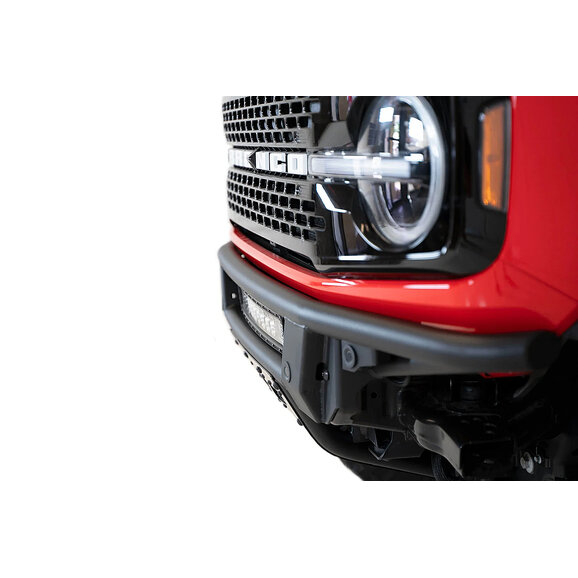 ADD's Pro Bolt-On Bumper for Ford Bronco features universal light mounts that can accommodate up to a 20-inch LED light bar, or 5 cube lights at the center of the bumper. Factory parking sensors are integrated into the design and retain full functionality.