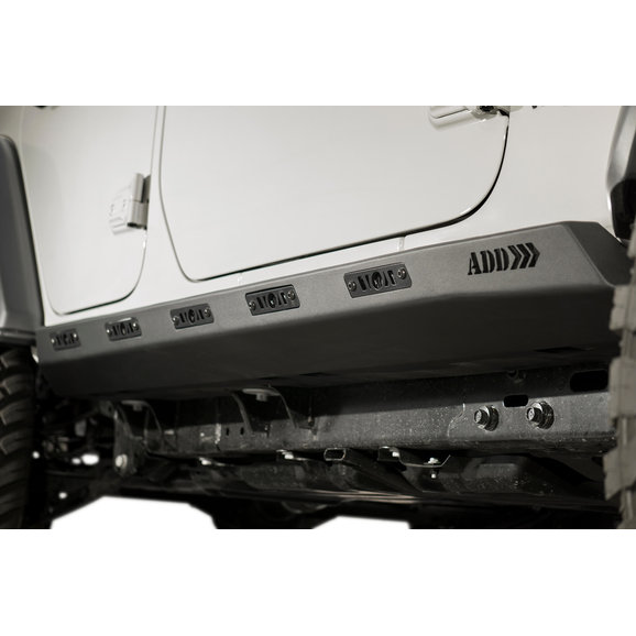 Features: Although these sliders bolt to the body mounts they provide more coverage of the under body. There are five rock light mounts that will fit most aftermarket rock lights to give you or your spotter a better view of what you might be attempting to crawl over.