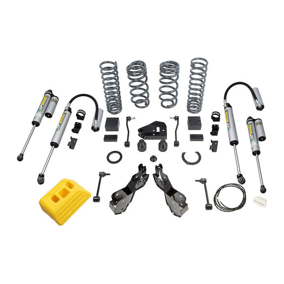 AEV’s 2.5" DualSport XP Lift Kit with Bilstein XP8100 Remote Reservoir Shocks is specifically engineered for the Jeep Wrangler JL 2-Door and Unlimited JL 4-Door. Designed to provide the optimal balance of load carrying capacity and ride quality, this kit includes frequency-tuned, triple-rate coil springs providing 2.5 inches of additional front and rear ride height and load handling capability. 66mm (2.6") AEV-tuned Bilstein 8100 series reservoir shocks offer the ultimate level of off-road performance, and heavy-duty, stamped control arm geometry correction brackets work to provide a factory-quality ride. The AEV/Bilstein coil spring and shock combination used in this suspension not only increases vertical travel performance but also provides improved articulation as well as better off-road speed and bottoming control.