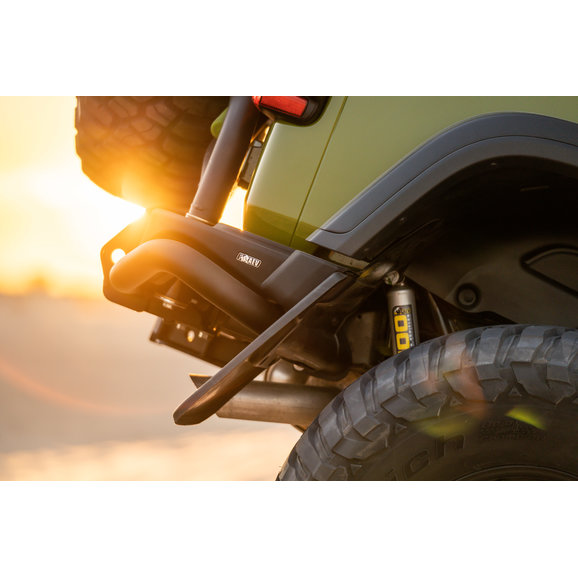 Off-Road Ready: The high-clearance design of the AEV RX Rear Bumper improves departure angles. Steel tubing protect the corners from rocks and other obstacles. The bumper features integrated heavy-duty clevises that allow you to mount a pair of 3/4-inch d-ring shackles (sold separately).