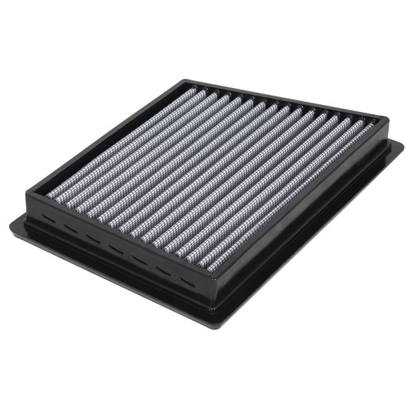 The aFe Power Magnum Flow Pro Dry S Air Filter for Jeep Cherokee KL 3.2L & L4 2.4L Engine is Constructed with 100% polyurethane on all sides. This high-flow, "oil free" OE replacement performance filter will out flow stock paper filter by 38% for improved horsepower and torque. The Pro DRY S air filter uses three layers of progressively finer mesh synthetic media to provide maximum convenience and easy maintenance. Washable and reusable for multiple cleaning cycles, the tall open evenly spaced pleats provide excellent dust holding capacity for a longer service cycle between cleanings. An integrated urethane bump seal insures tight, no leak seal over the life of the filter.