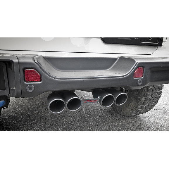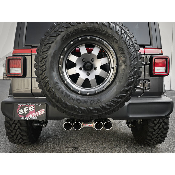 Quad Tip Style: Go stealth with durable black finished high flow muffler with massive 3.5” quad tips detailed with laser-cut aFe Power logo on their brace. If you prefer a more customized show Jeep appearance, opt for the polished silver option. Note: Quad tip design will not work with tow hitches.