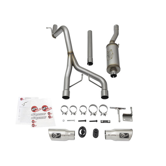 This unique Rebel Series exhaust system is designed with dual center exit tips for an aggressive look. The Tips are 4-1/2" with aFe power plates and constructed out of stainless steel for durability. This performance cat-back exhaust is constructed of 2-1/2" MIG-welded mandrel-bent stainless steel tubing. The smooth curves and increased diameter of this exhaust system helps remove restriction and keeps exhaust gas flowing smoothly for increased horsepower, torque and throttle response. In testing, this cat-back exhaust system added an astounding +9 horsepower and +14 lbs. x ft. of torque as verified by our in house dyno. This exhaust system comes complete with a 22" free-flowing muffler, OE style bayonet hangers, band clamps and all hardware necessary for a hassle-free installation.
