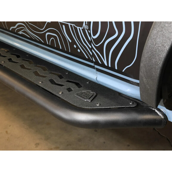 Installation is simple and secure with a direct bolt-on design that requires no drilling or modifications. These sliders mount to factory points, preserving your Bronco’s structural integrity while adding a functional side step and critical rocker panel protection. Whether you're navigating rocky terrain or just want a more rugged aesthetic, the Terra Guard Off-Road Sliders deliver the strength, style, and utility that off-road enthusiasts demand.
