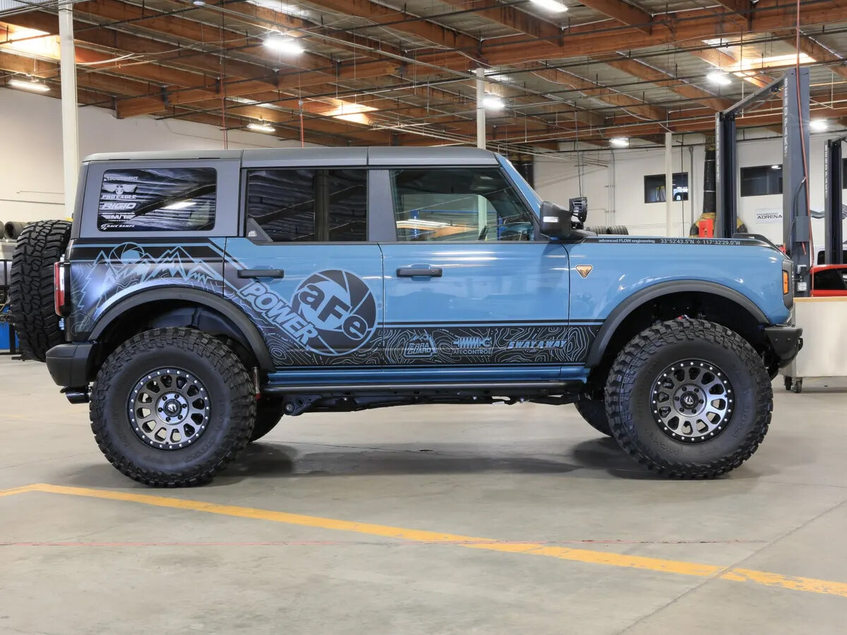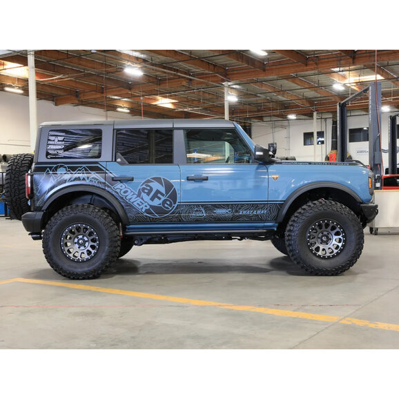 The aFe POWER Terra Guard Off-Road Slider is built to provide serious protection and rugged functionality for Ford Bronco 4-door models. Constructed from heavy-duty 3/16" and 1/8" steel plate with 1.75" x 0.12" wall steel tubing, these sliders are engineered to handle the harshest off-road conditions. Their fine-textured black powder coat finish not only resists corrosion but also adds a bold, aggressive look to your Bronco. Designed with a removable tread plate, they offer both customization and added traction, making them ideal for trail use and daily driving alike.