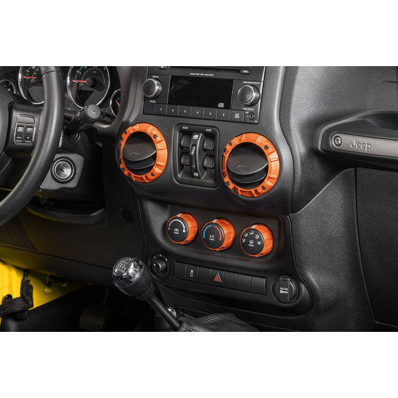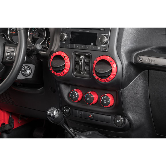 Set the look of your interior apart from the crowd for your 2011-2018 Jeep Wrangler Jk with the dynamic burst of color AJT Design's Impact Climate Control Knob & Vent Trim Kit provides. The simple to install kit includes climate knob trim rings and vent accent trim rings made from durable injection-molded plastic. The Climate knobs retain OE button and provide tactile feedback and clear indicator lights just like the original knob. AJT Design's interior dash climate knob and vent trim kit is the perfect detail for show jeeps or for the daily driver that wants to add his or her own flair to the cockpit of your favorite 11-18 Jeep Wrangler JK of any trim level package. Available in 13 distinct colors and made proudly in the U.S.A. AJT interior accents are backed by a 1-year Limited Warranty