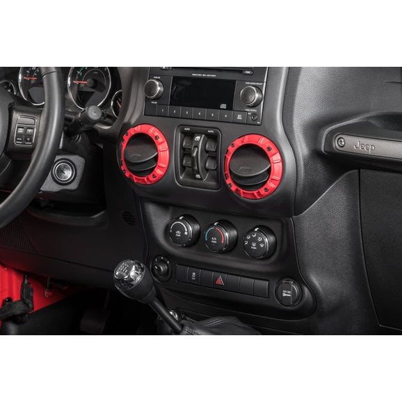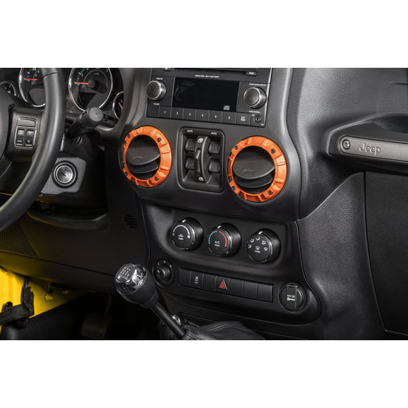 Add dynamic visual style to the dash of any 2011-2018 Jeep Wrangler JK with AJT Design's Impact Dash Vent Trim Rings. Injection molded of high strength and impact resistant ABS plastic and including handsome black oxide socket head screws for a custom eye catching accent to personalize your Jeep's interior with the color you love. Installation is a breeze and requires only a flat head screwdriver (not supplied). Choose from 13 different distinct color choices and be sure to see AJT Designs other interior upgrades and Key Fob cases (sold separately). Proudly made in the U.S.A.