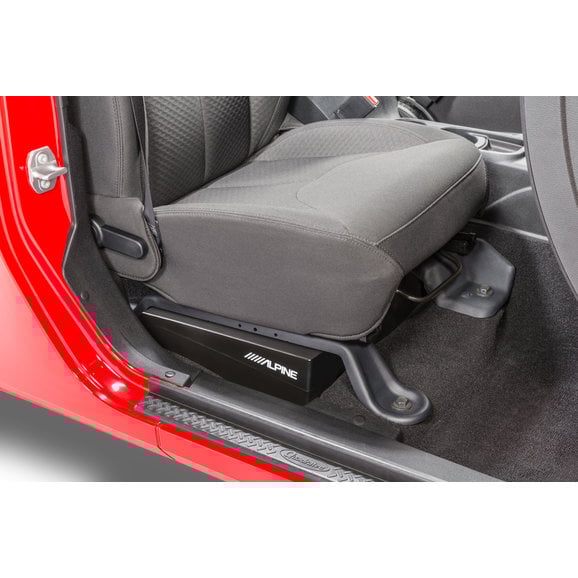 Jeeps are not known for their factory stereo performance, and it can be hard to hear your tunes when driving with the top down. Take back the power with an Alpine 10" Water Resistant Subwoofer. This easy to install upgrade conveniently mounts under the passenger seat and out of the way. It is designed for use with the Alpine MRV-M500 Mono V-Power Digital Amplifier (sold separately). Unlike other aftermarket subwoofers, this Alpine unit is waterproof (IP66 rating), so you do not need to worry about damaging it in a rain storm or on the trail. Alpine backs this sub with a 1 Year Limited Warranty.