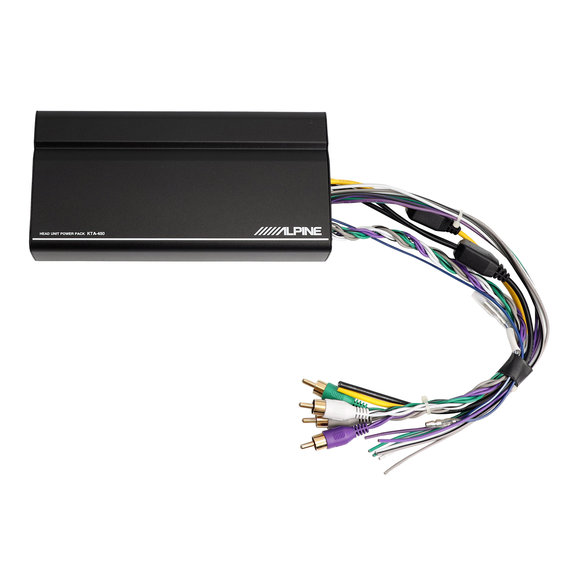 Big things come in small packages, and this point is proven with the Alpine KTA-450 4-Channel Power Pack Amplifier. This compact 4-channel amplifier features Alpine’s exclusive dynamic peak power (DPP) technology. DPP allows the KTA-450 to have 400-watt peak power while only measuring 7” x 3.5” x 1.25”. Because of its compact design, the KTA-450 can be mounted to the back of the Alpine Alpine iLX-W650 Digital Multimedia Receiver. Alpine includes a plug and play harness and their PowerStack bracket specifically for use with the iLX-W650.