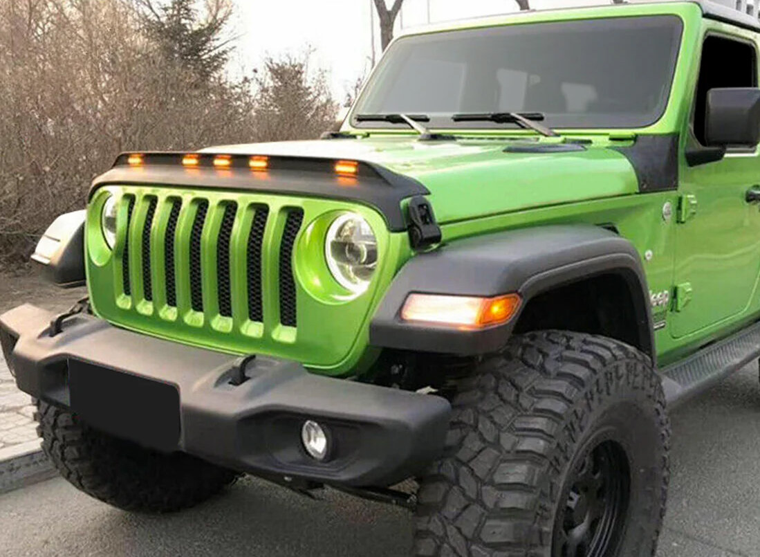 American Modified AMJPCA00204 Front Hood Protector Stone Guard W/ Amber LED Lights for 18-26 Jeep Wrangler JL & Gladiator JT