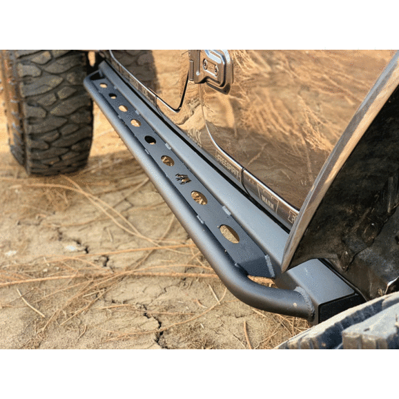 Give your Jeep Wrangler JL Unlimited some much needed protection with the Rock Rail Side Steps by American Trail Products. This pair of side steps are made from high strength 3/16" cold rolled steel and feature .120" DOM tubing. The flat surface of the side step provides plenty of room to be used as a functional step while getting in and out of the vehicle or accessing gear on your roof rack. Each side step is fully powder coated in a light textured black finish that will stand up to any type of terrain or climate. Installation is easy with no drilling, cutting or modifications required. All of the necessary hardware is included for the installation. Sold in pairs. Made in the USA!
