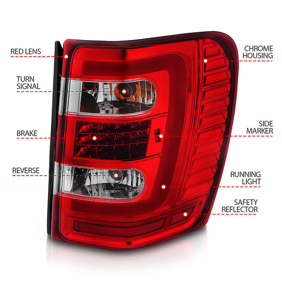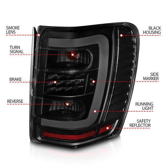 The Anzo LED Tail Lights for 99-04 Jeep Grand Cherokee WJ is available in a Red, Clear or Smoked lens. These tail lights are engineered using the latest ground-breaking CAD technology to guarantee that your vehicle is equipped with truly superior lights which will outlast and outshine your factory lights while also giving your ride a stylish and unique appearance that sets you apart from the rest! These extremely bright Anzo lights will ensure your next night's driving trip is safe and comfortable by making your vehicle easily discernable to everyone you share the road with! The powerful lights are ideal for replacing your old, cracked, and yellowing factory lights, and will deliver a bright shine for a safer and more pleasant driving experience. They are easy to install thanks to their plug-and-play design, featuring durable weather-tight connections for a perfect and secure OEM fit. These lights are designed for extreme durability, resisting damage from moisture and withstanding the impact of road debris and the elements. All Anzo products have undergone rigorous testing for extreme durability even under the most extreme weather conditions. They are DOT and FMVSS No. 108 compliant.