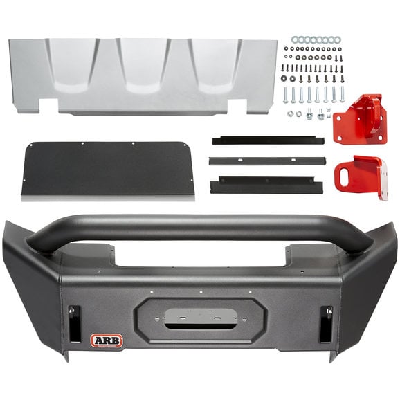 Front Bondi Stubby Winch Bumper: Completely change the look of your Jeep Wrangler JL with the ARB Front Bondi Stubby Winch Bumper. This heavy-duty bumper features an attractive high-clearance design for better performance and an aggressive appearance. With a built-in winch mount, 3in bull bar, and skid plate included, this bumper was designed with off-roading in mind. In case you do get stuck, this bumper also has built-in jacking points and red contrast tow hooks. The rest of the bumper is finished in ARB’s Integrit textured-black powder coat.