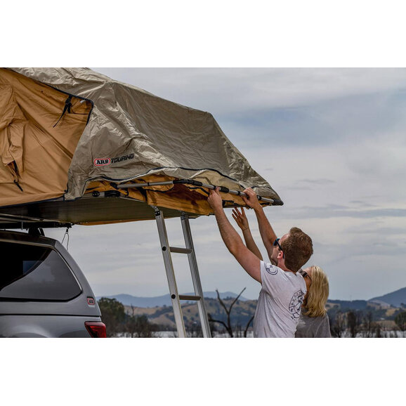- The ARB Rooftop Tent can be mounted to an ARB touring style rack or any flat roof bar system with 95lb kinetic load rating