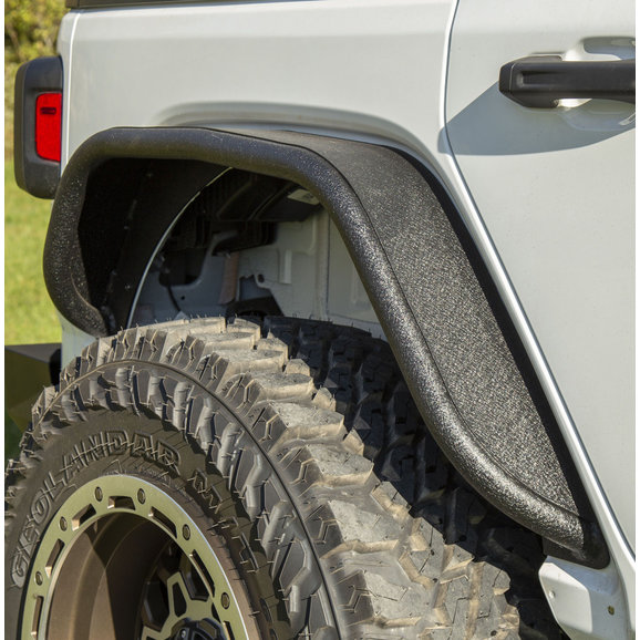 When tackling the more challenging trails out there in your Wrangler JL you might consider going bigger in the tire department. One problem you might come across though is fitting them with your stock fender flares. These Rear Fender Flares have a flat profile to give you that extra clearance and are made from durable lightweight aluminum that is powder coated.