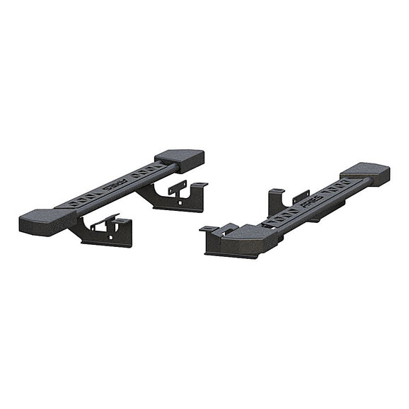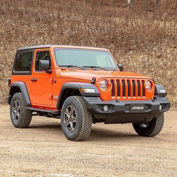The ARIES Rocker Step Running Boards exclusively fit 2018-23 Jeep Wrangler 2-door models and offer a rugged all-steel construction that is fully welded for maximum strength. Boards also sit high and tight to body for plenty of clearance against trail obstacles. Engineered with double-tube configuration and a 3" wide welded top plate for reliable footing in all weather conditions. Steps also have an aggressive cutout pattern that allows dirt and debris to pass through to keep step area clean. Easy, no-drill installation and includes all necessary hardware. Sold in pairs. Features a lifetime warranty, as well as a three-year finish and one-year parts warranty.
