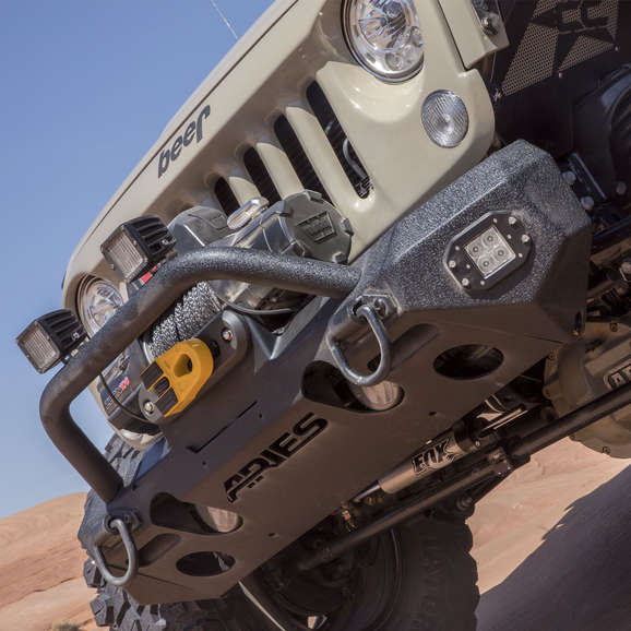 Off-Road Function: This bumper is more then capable of tackling the outdoors. With a winch housing to fit standard size winches to help if you or you buddies get stuck along with d-ring and tow hook mounts to help aid in recovery situations you should have no worries when out there having fun. Add on the LED corners give you a nice flood beam pattern plus the additional light mount points to add even more lights if you need them. Th round center brush guard will keep your grille protected from trail debris.